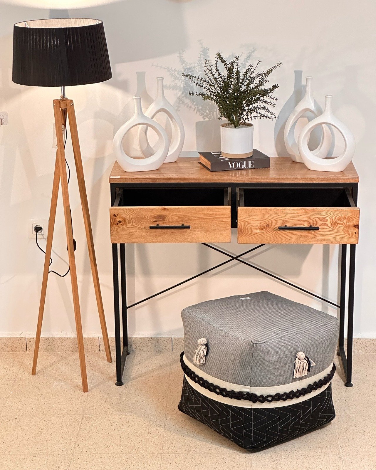 Tables avec accents métalliques et finitions à la main