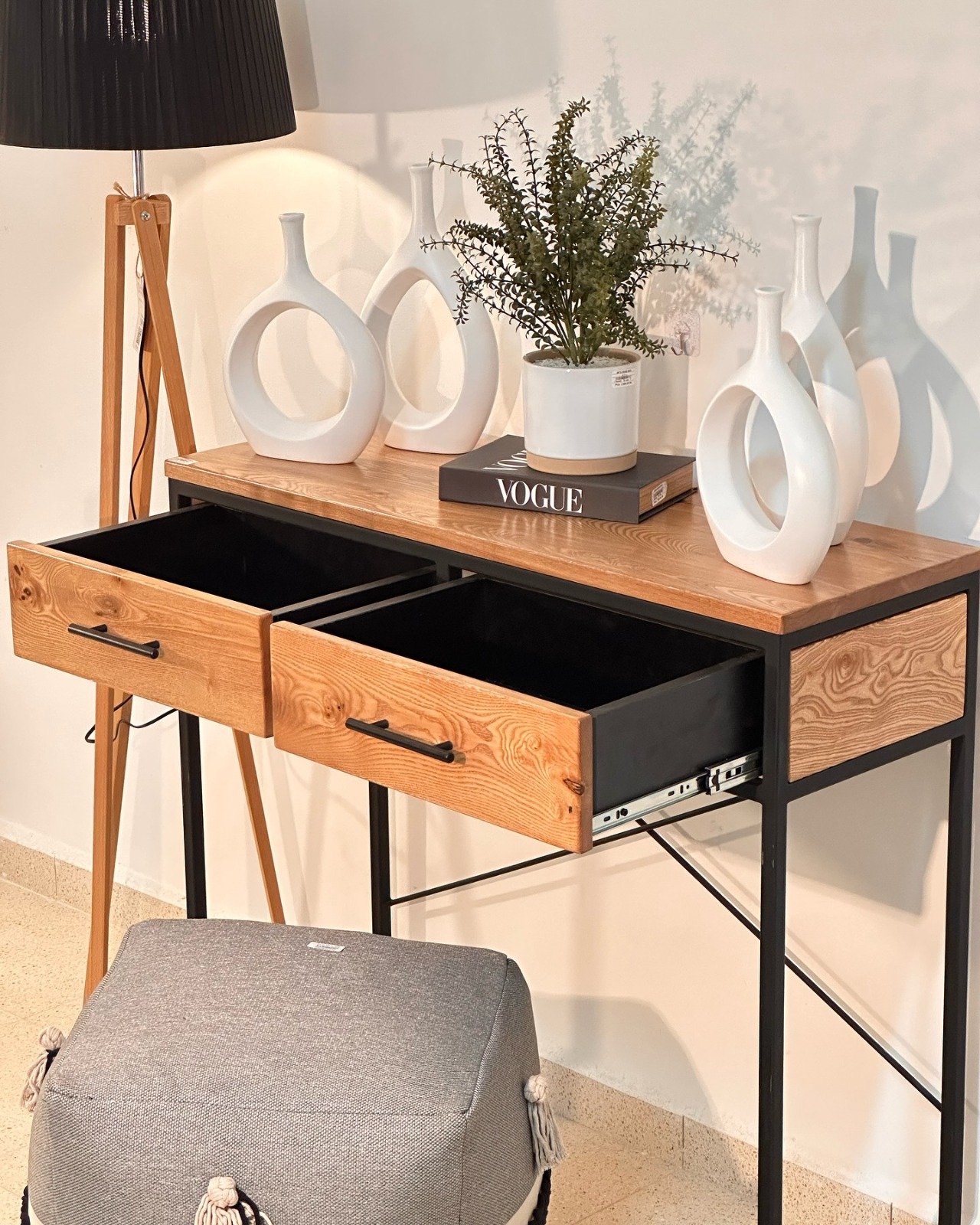 رف يجمع بين الخشب عالي الجودة واإلطار المعدني األسود ليمنحك تخزيً