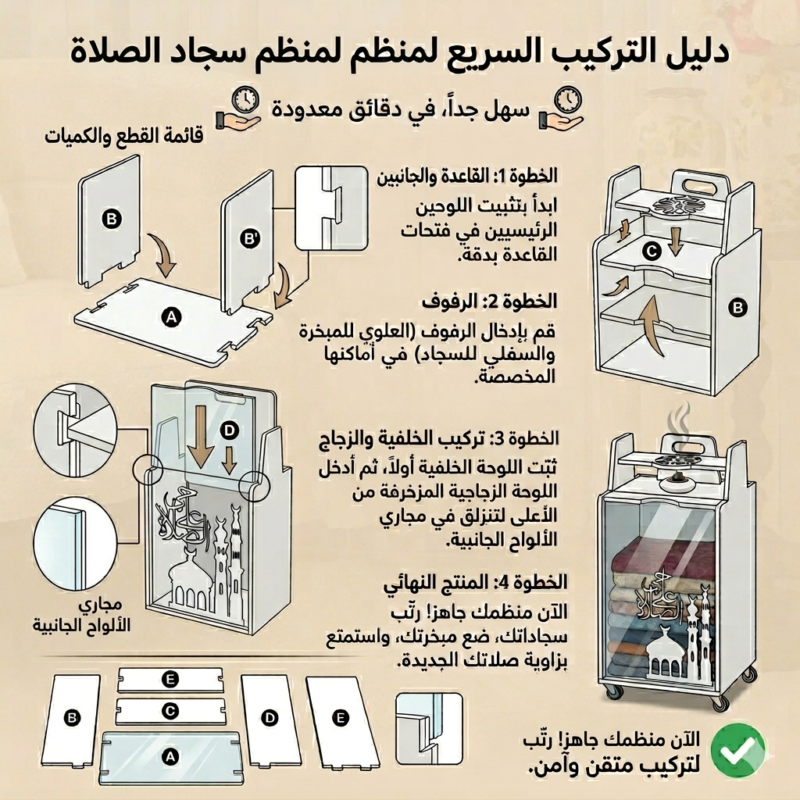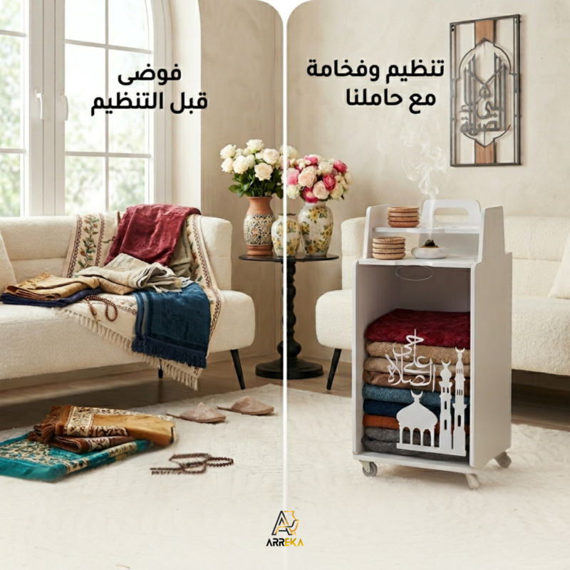 منظم أنيق وعصري مصمم خصيصًا لحفظ سجادات الصلاة بشكل مرتب وجميل.